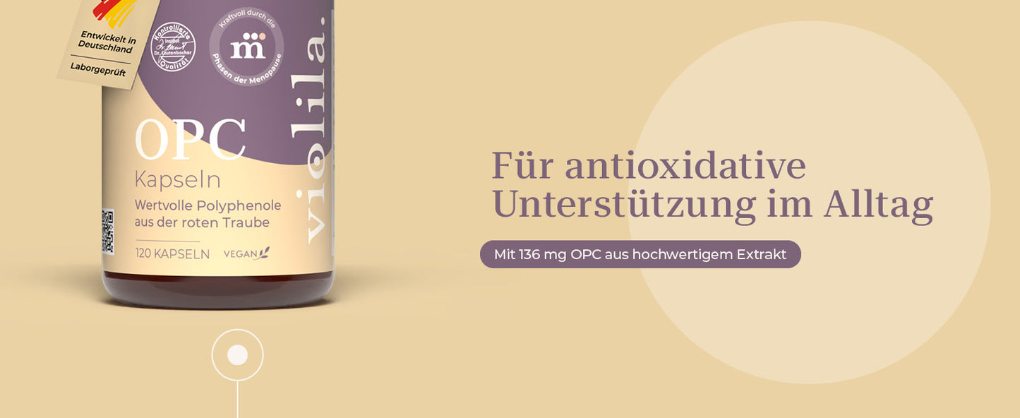Violila OPC Kapseln liefern konzentrierten Traubenkernextrakt in standardisierter Qualität – eine pflanzenbasierte Ergänzung für alle, die sich ganzheitlich stärken möchten. Optimal für Frauen, die in den Wechseljahren auf Natürlichkeit und hochwertige Mikronährstoffe setzen.