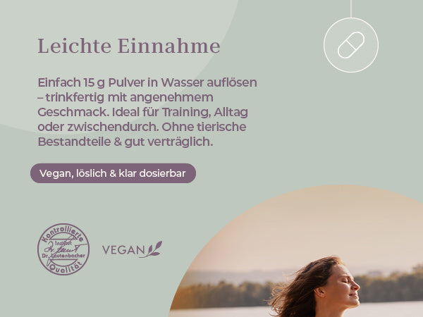 Amino⁺ lässt sich einfach in Wasser auflösen – ideal rund um Sport oder im Alltag. Es ergänzt die Ernährung gezielt um alle essenziellen Aminosäuren – mit 6 g BCAAs und 12 g Eiweiß pro Portion. Vitamin B6 unterstützt zusätzlich das Immunsystem, den Energiestoffwechsel und den Eiweißstoffwechsel.Was macht Amino⁺ in besonderen Lebensphasen relevant?