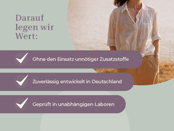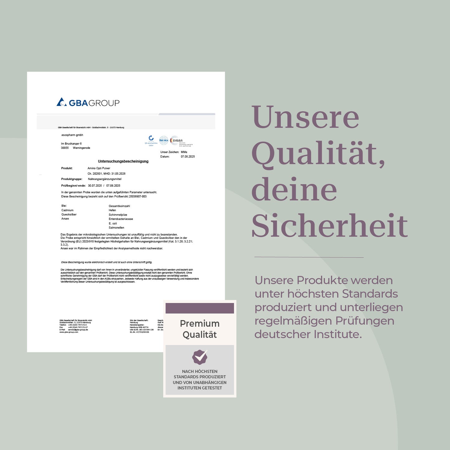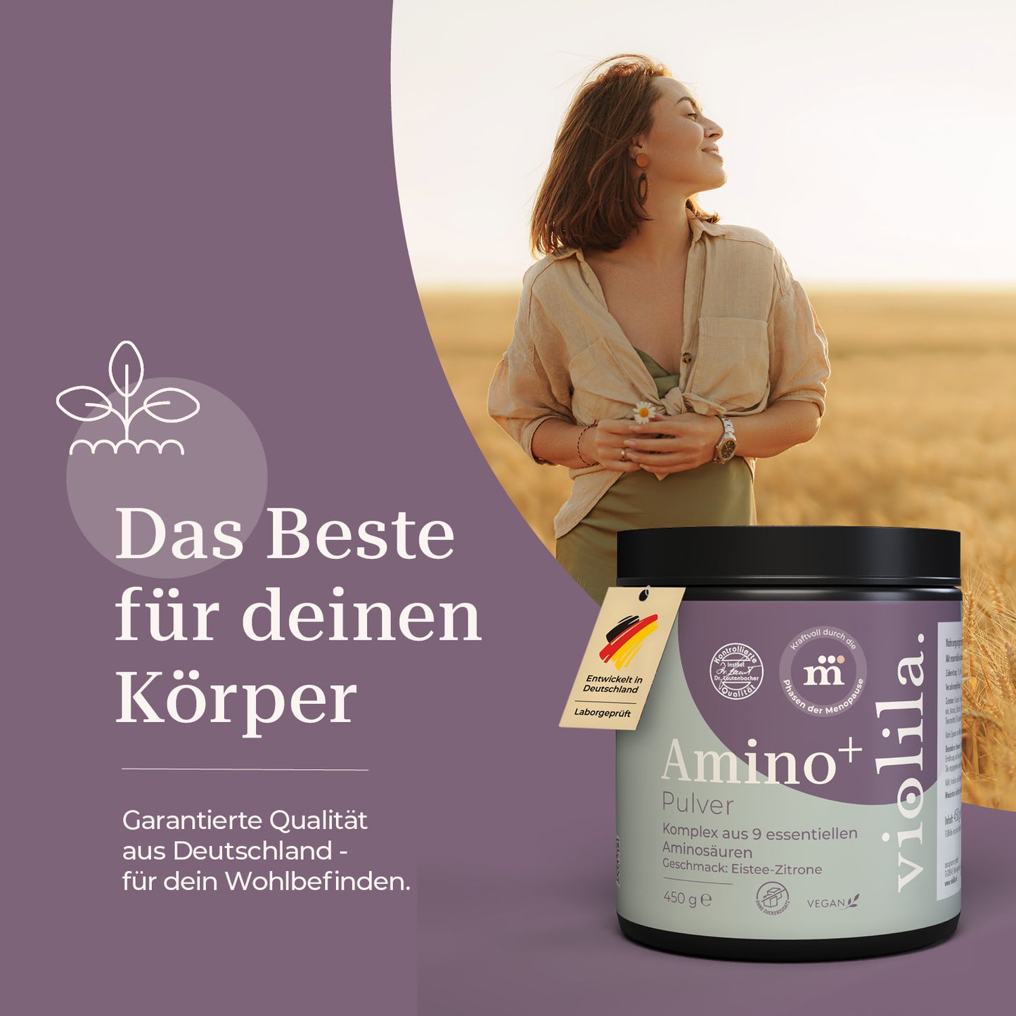 In körperlich oder hormonell fordernden Phasen – z. B. in den Wechseljahren oder bei regelmäßigem Training – kann der Bedarf an bestimmten Aminosäuren steigen. Amino⁺ liefert ein vollständiges Spektrum essenzieller Aminosäuren in Kombination mit Vitamin B6 – vegan, alltagstauglich und lecker. Für alle, die ihre Balance mit bewusst gewählten Nährstoffen unterstützen möchten.Zusätzliche Informationen